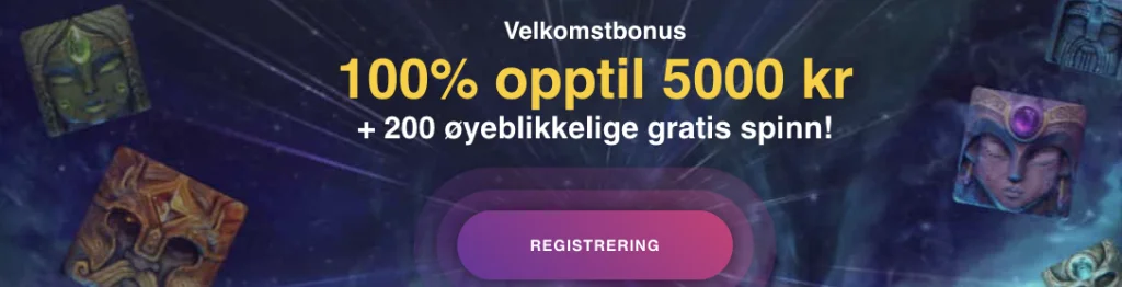 | Velkomstbonus | 100 % bonus opptil 5000 kr + 200 free spins. | 100 % bonus opptil 5000 kr + 100 free spins. |